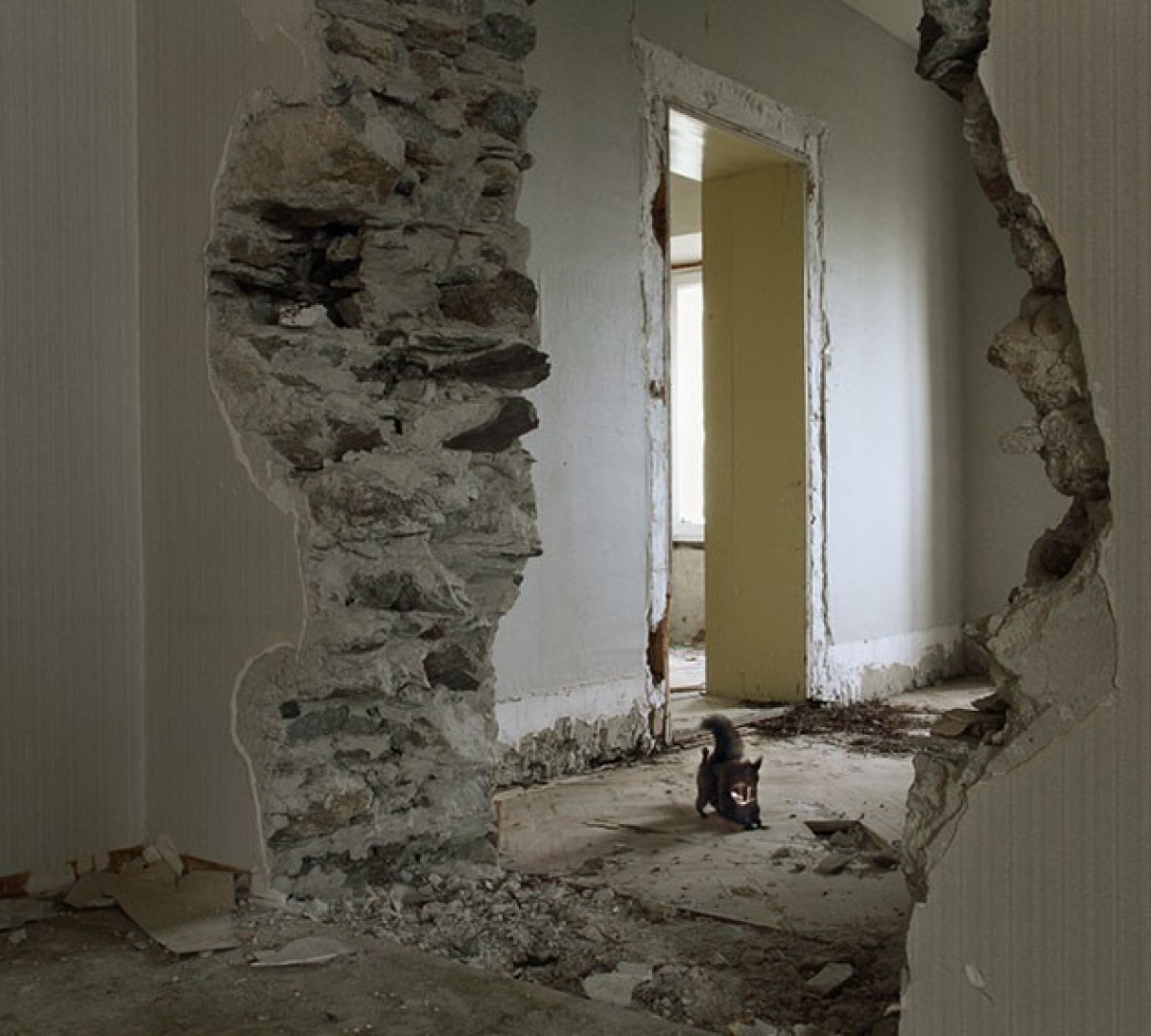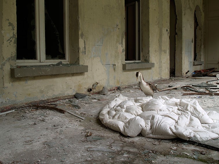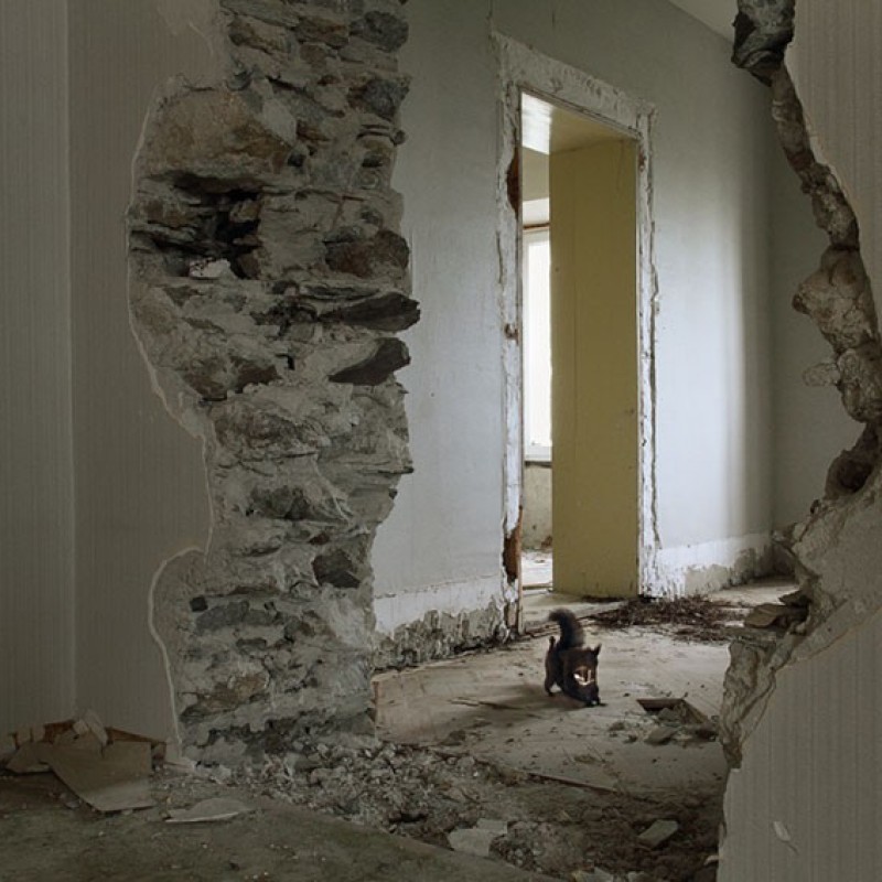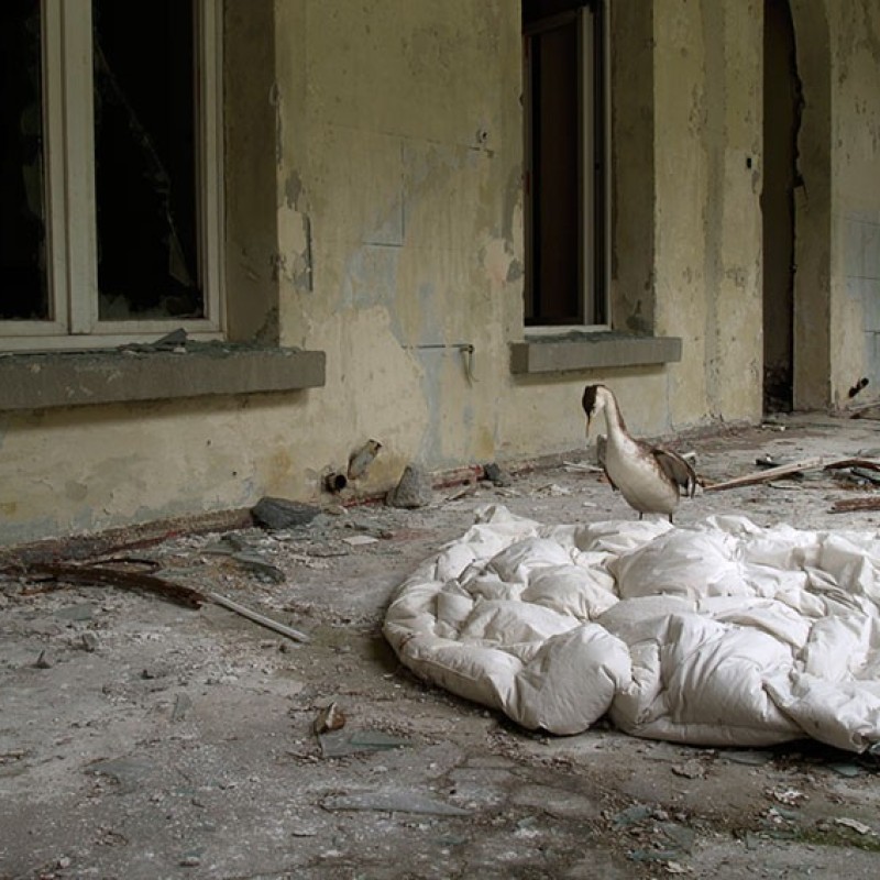 Wo Haubentaucher, Steinmarder, Reh und Fuchs durch ein ehemaliges Kurhotel wandern, lohnt sich ein zweiter Blick aufs Bild. Neben dem narrativen Moment, welches märchenhafte Szenen heraufbeschwört, stellen die Fotografien der Serie «Behind the silence» auch Fragen nach Echtheit und Inszenierung, nach Idealbildern und dem Vertrauten im Absurden.