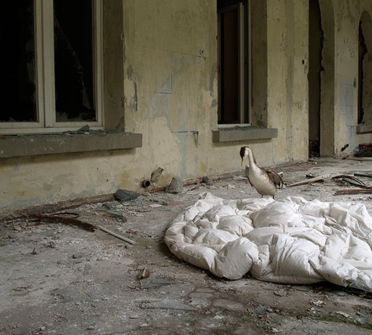 Wo Haubentaucher, Steinmarder, Reh und Fuchs durch ein ehemaliges Kurhotel wandern, lohnt sich ein zweiter Blick aufs Bild. Neben dem narrativen Moment, welches märchenhafte Szenen heraufbeschwört, stellen die Fotografien der Serie «Behind the silence» auch Fragen nach Echtheit und Inszenierung, nach Idealbildern und dem Vertrauten im Absurden.